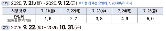 1차: 2025 7월 21일 (월요일) ~ 9월 12일 (금요일)